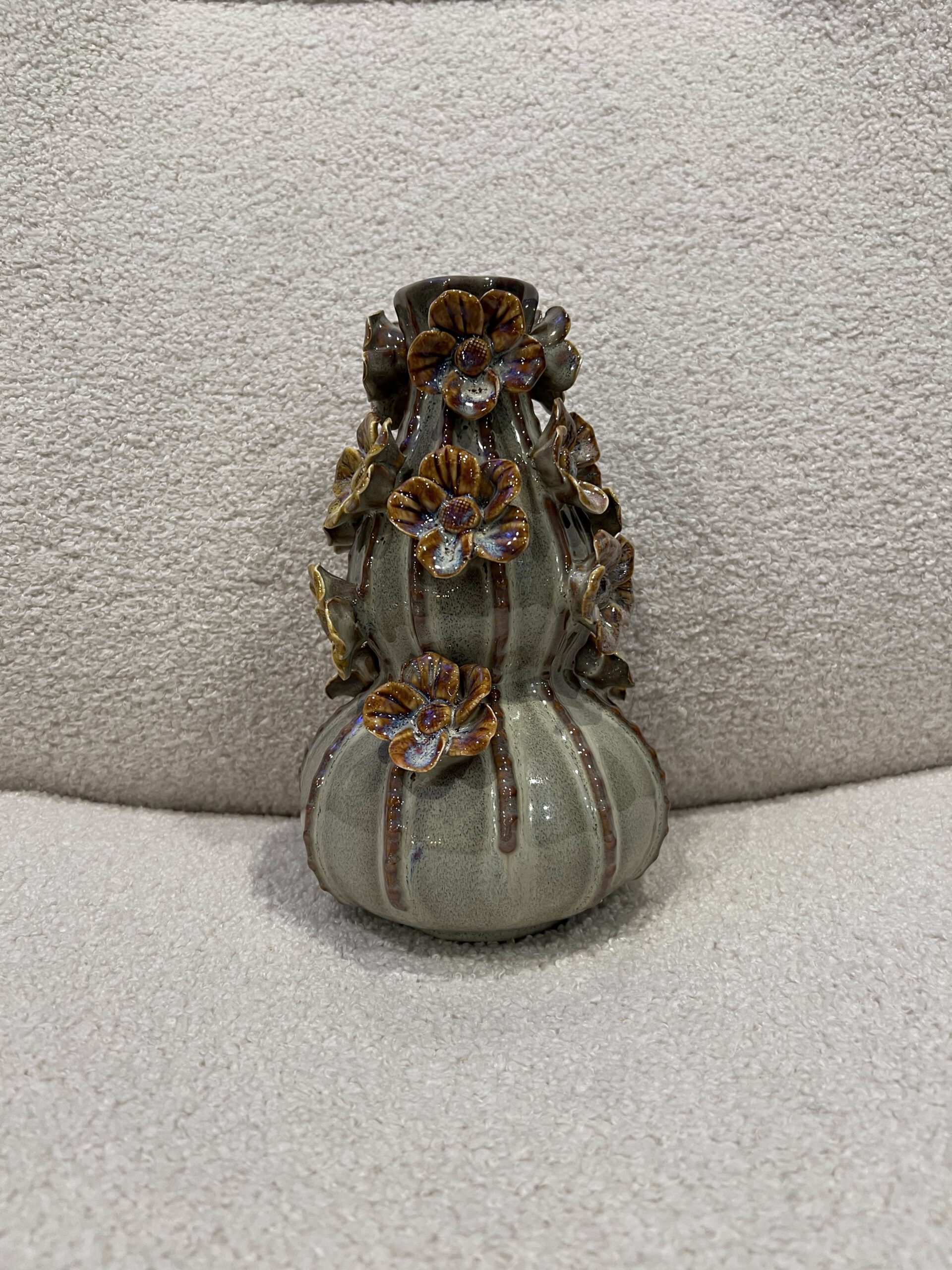 Vaas flower mosgroen bubbels 14x22cm